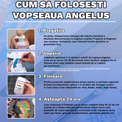 Uite o poza cu pasii necesari pentru folosirea vopselii Angelus.
